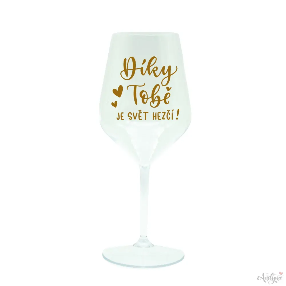 Čirá plastová sklenka na víno - Díky Tobě je svět hezčí